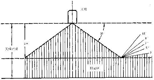 771 以天線為中心,半徑300 m以內場地應平坦開闊,一切障礙物的高度不應超出圖 8所示的陰影區。