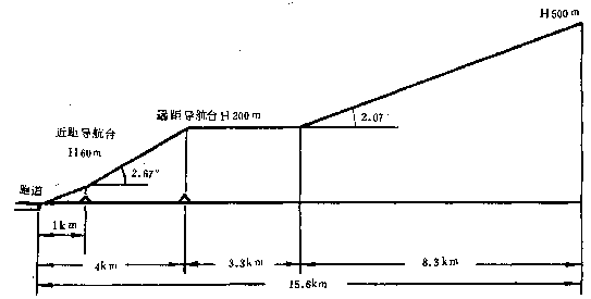 B1  運輸機按遠、近距導航臺進場著陸時的下滑線(下圖)。